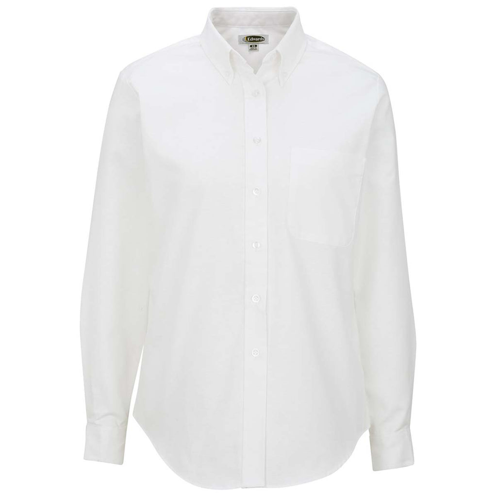 Nothing shows professionalism like a custom Oxford and Edwards Women's White Long Sleeve Oxford Shirt is top of the line. The cotton rich long sleeve polyester blend is a blouse that can carry your company logo as a corporate uniform or every day wear in the office. The button-down collar, left chest pocket, and full cut pleat allows you to do all you need in atypical day. Create a professional embroidered look for employee apparel or simply order several with a custom logo to keep on hand when needed for big events. Fully machine washable, these button downs are wrinkle resistant and offer a soil release finish.Highlights