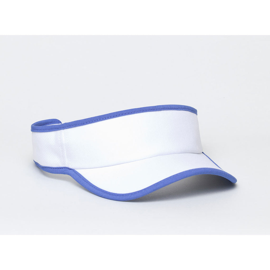 The two-inch crown on the logoed Pacific Headwear White/Columbia Blue Lite Series All-Sport Active Visor does a great job of preventing the sun from obscuring your vision during an outdoor recreational activity. Wear the stylish visor on the golf course or at the weekly corporate league softball game. Lightweight to keep you fresh all day long, the cap contains "Ghost" performance polyester fabric to ensure supreme comfort. The reference to "Ghost" means you do not even notice the cap is there. Give the fashion accessory to the hard working members of your team to show your appreciation. Just remember to add a custom logo that generates buzz for your company everywhere your employees go.Highlights