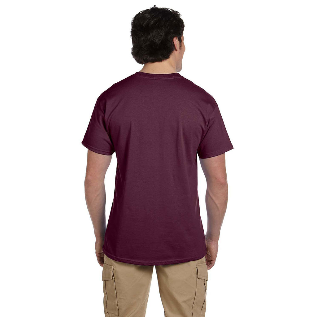 Practice being green in this custom Hanes Men's Maroon 5.2 oz. 50/50 EcoSmart T-Shirt with the screen print of your choosing. Ideal for use as employee apparel as your workers will be comfortable all day in the cotton and polyester blend that contains up to 5% recycled polyester to help the planet. Make a statement at your next trade show or recruiting event with these company screen print tees that will be wanted by all. Also perfect for company outings or team sports in which knowing who is on your team is important. Place your order today for one of the 33 available colors.Highlights