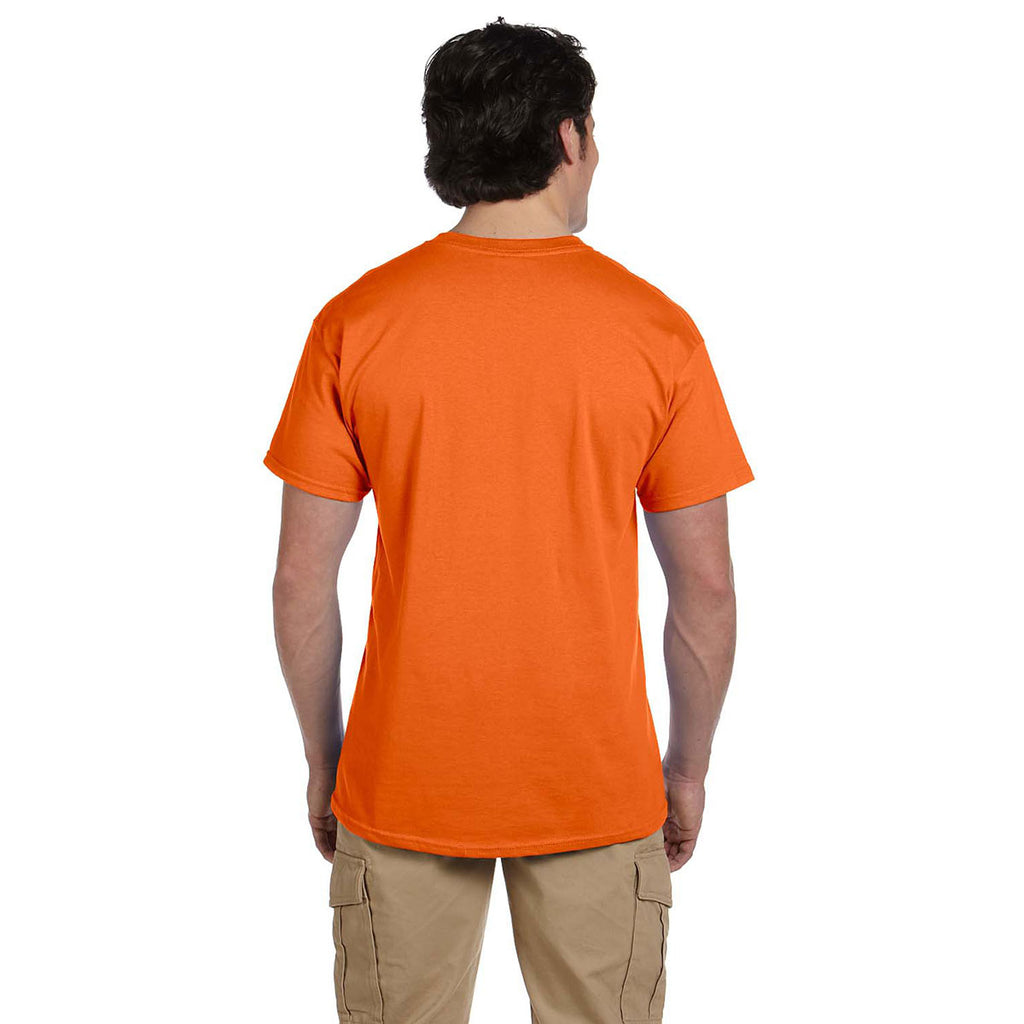 Practice being green in this custom Hanes Men's Orange 5.2 oz. 50/50 EcoSmart T-Shirt with the screen print of your choosing. Ideal for use as employee apparel as your workers will be comfortable all day in the cotton and polyester blend that contains up to 5% recycled polyester to help the planet. Make a statement at your next trade show or recruiting event with these company screen print tees that will be wanted by all. Also perfect for company outings or team sports in which knowing who is on your team is important. Place your order today for one of the 33 available colors.Highlights