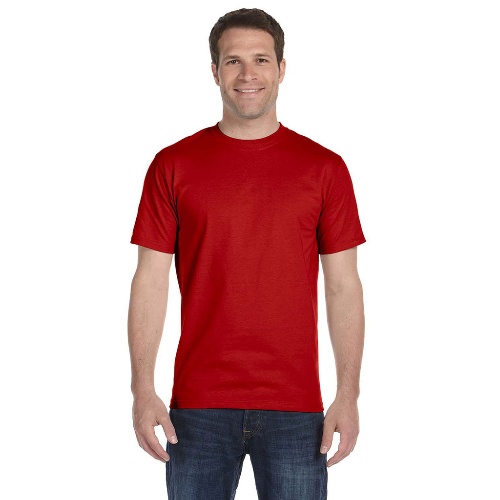 Custom logoed Hanes Men's Deep Red 6.1 oz. Beefy-T will be an instant favorite at all your recruiting events. Available in 44 different colors, your screen print will pop to grab the attention of passersby. Made of 100% ringspun cotton, the tag free neck label and cover seamed lay flat collar make this t-shirt the ultimate in comfort. Ideal as employee apparel for those that are working hard for the company or as a form of recognizable advertising at recruiting events. These t-shirts are so comfortable people will want to wear them daily, even outside of work. Place your order today to be prepared for the next big event.Highlights