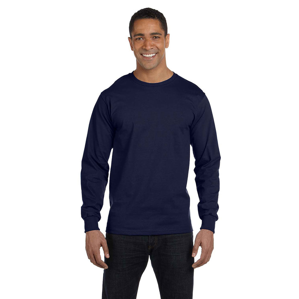Hanes Men's Navy 6.1 oz Long-Sleeve Beefy-T