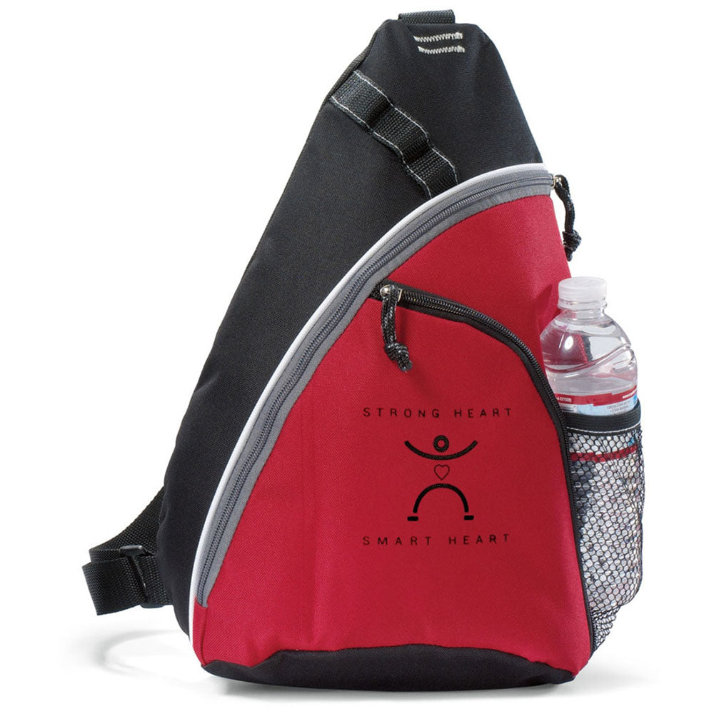 Head out for some fun with a custom Gemline Red Wave Sling Bag made of strong denier polyester. The two zippered compartments, adjustable shoulder strap, and side mesh pocket make this bag convenient for shopping, hiking, or finding adventure on the open road. Sling the bag over your shoulder, hop on your motorcycle, and leave your worries behind. Order today.