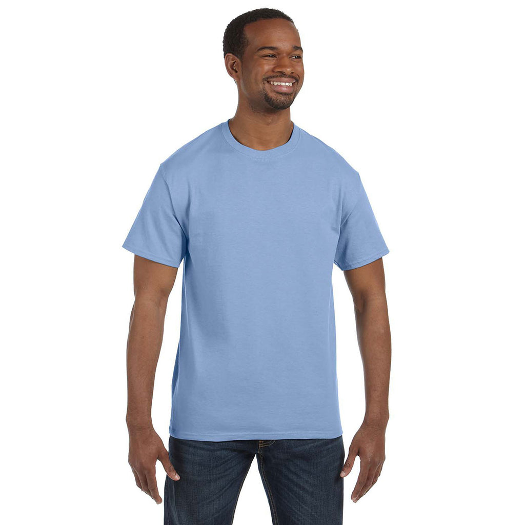 Custom logoed Hanes Men's Light Blue 6.1 oz. Tagless T-Shirt will be an instant favorite at all your recruiting events. Available in 47 different colors, your screen print will pop to grab the attention of passersby. Made of 100% ComfortSoft cotton, the tag free neck label and lay flat collar make this t-shirt the ultimate in comfort. Ideal as employee apparel for those that are working hard for the company or as a form of recognizable advertising at recruiting events. These t-shirts are so comfortable people will want to wear them daily, even outside of work. Place your order today to be prepared for the next big event.Highlights