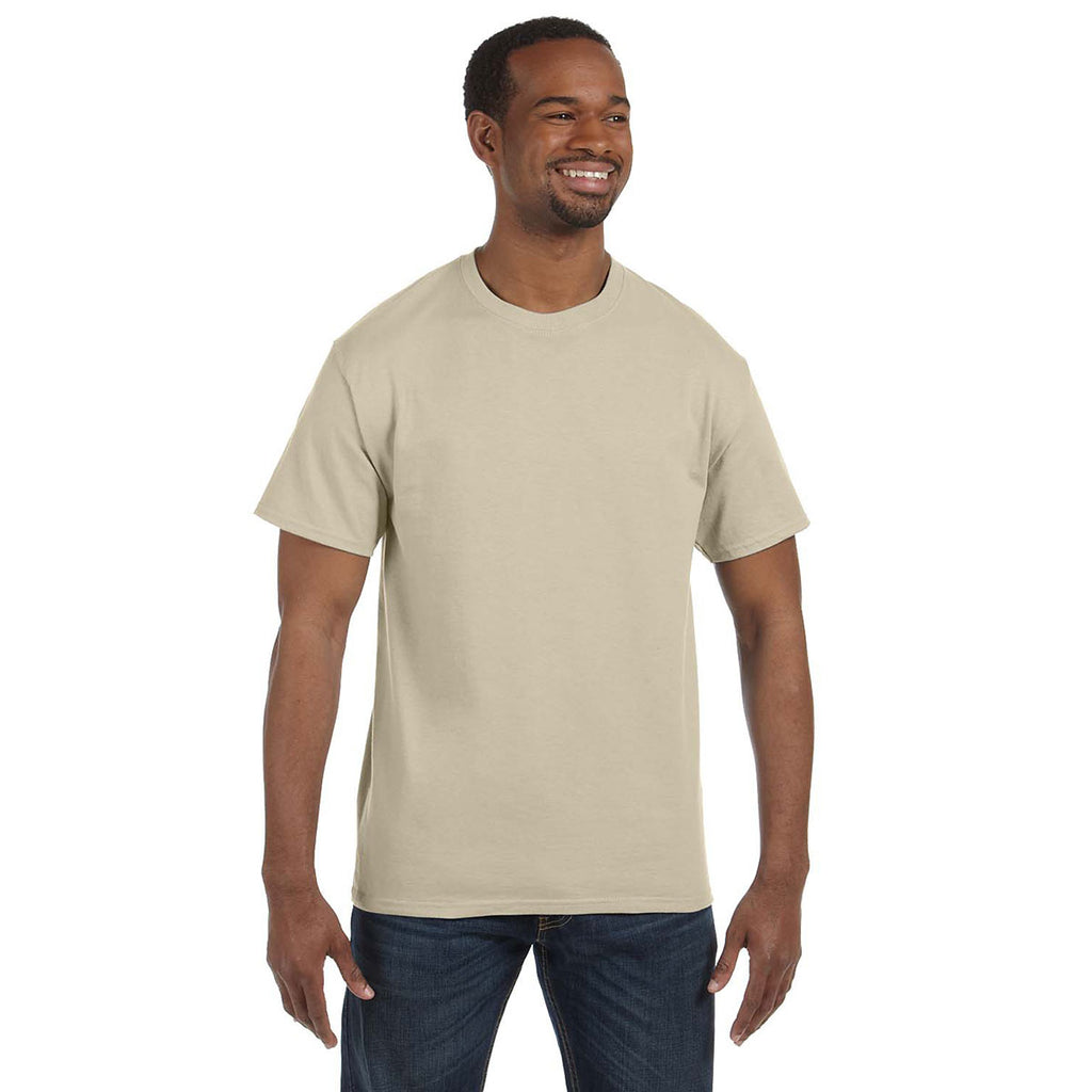 Custom logoed Hanes Men's Sand 6.1 oz. Tagless T-Shirt will be an instant favorite at all your recruiting events. Available in 47 different colors, your screen print will pop to grab the attention of passersby. Made of 100% ComfortSoft cotton, the tag free neck label and lay flat collar make this t-shirt the ultimate in comfort. Ideal as employee apparel for those that are working hard for the company or as a form of recognizable advertising at recruiting events. These t-shirts are so comfortable people will want to wear them daily, even outside of work. Place your order today to be prepared for the next big event.Highlights