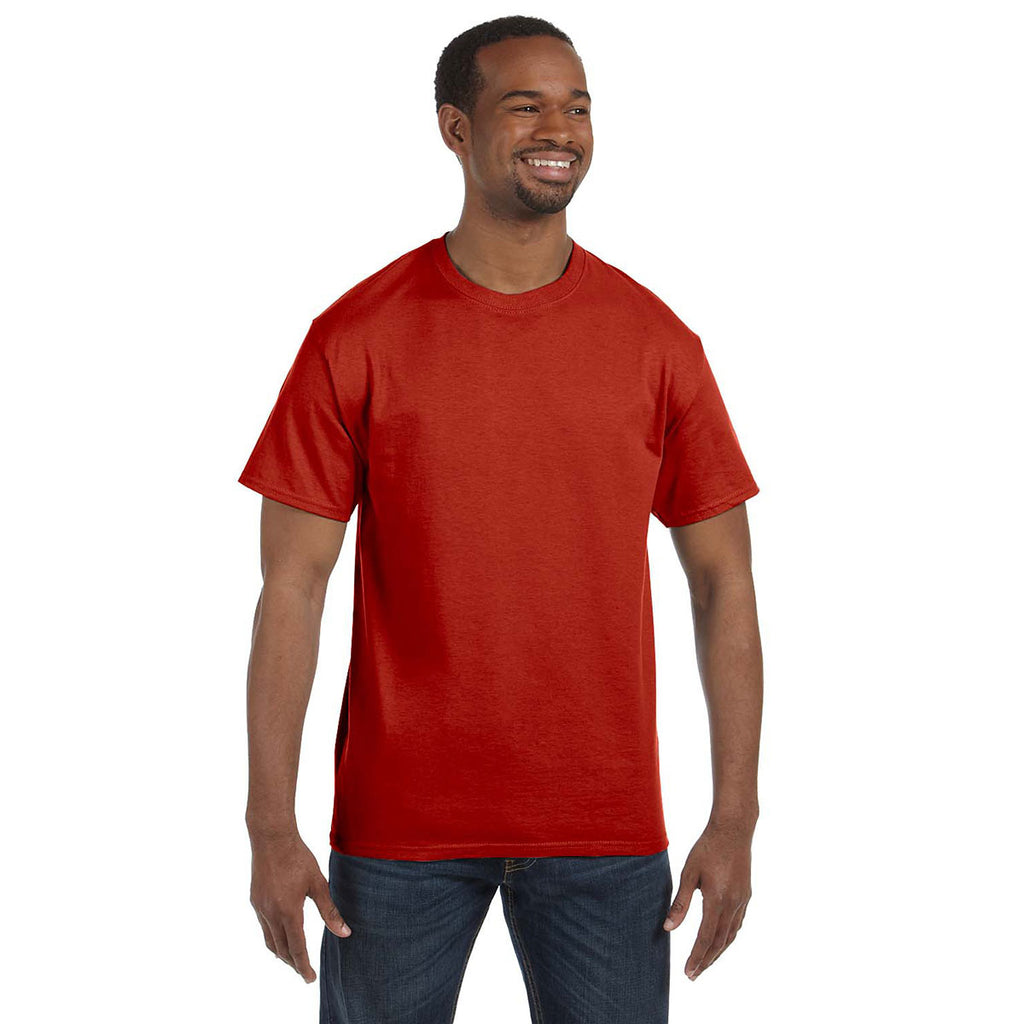 Custom logoed Hanes Men's Deep Red 6.1 oz. Tagless T-Shirt will be an instant favorite at all your recruiting events. Available in 47 different colors, your screen print will pop to grab the attention of passersby. Made of 100% ComfortSoft cotton, the tag free neck label and lay flat collar make this t-shirt the ultimate in comfort. Ideal as employee apparel for those that are working hard for the company or as a form of recognizable advertising at recruiting events. These t-shirts are so comfortable people will want to wear them daily, even outside of work. Place your order today to be prepared for the next big event.Highlights