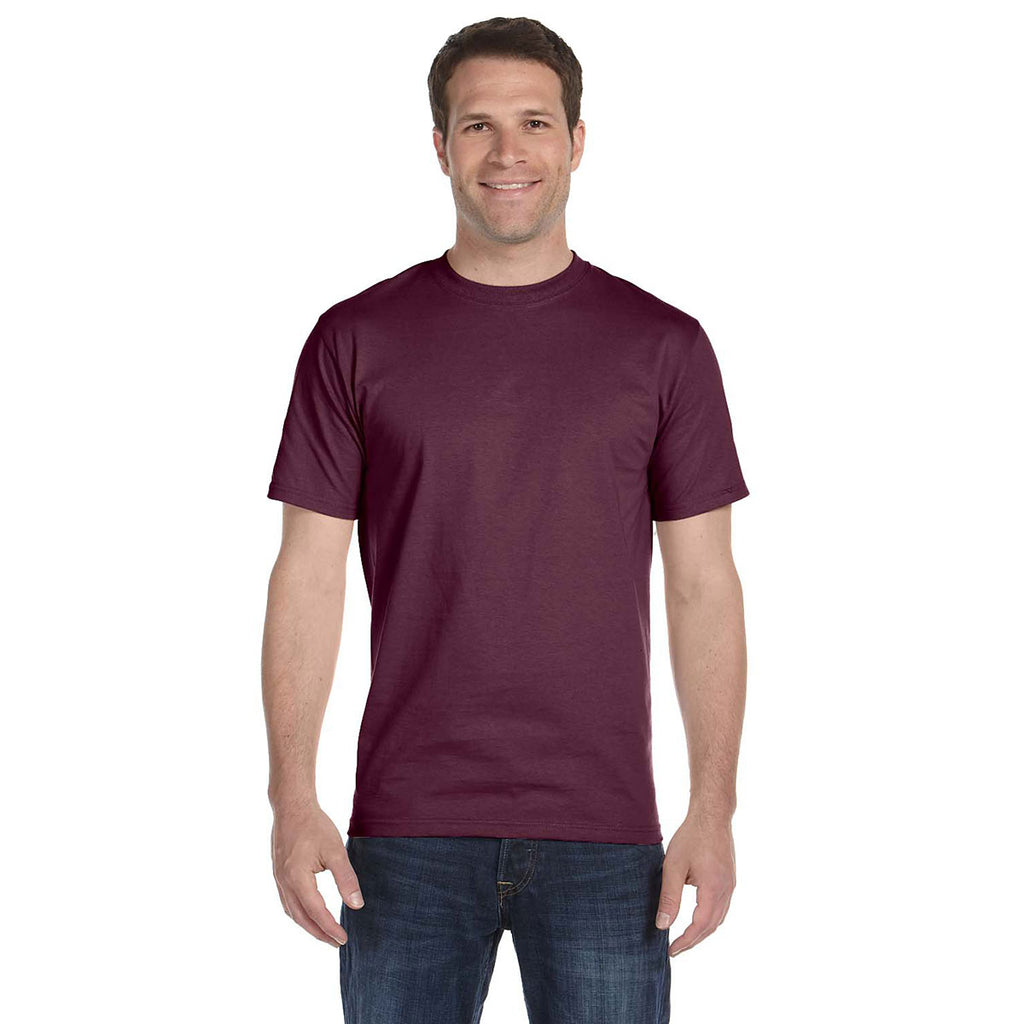 Add a custom logo to your Hanes Men's Maroon 5.2 oz. ComfortSoft Cotton T-Shirt to show team or company spirit no matter the activity. The beautiful screen print will not only draw the eye, but offer the comfort needed to help people want to wear your shirt. Great as employee apparel for daily wear or to use at recruiting events to draw a crowd. Available in 27 different colors, the double-needle stitching and lay flat collar will make your custom tee an instant favorite of those who see or try them on. Order a few or an entire box before your next event is scheduled.Highlights