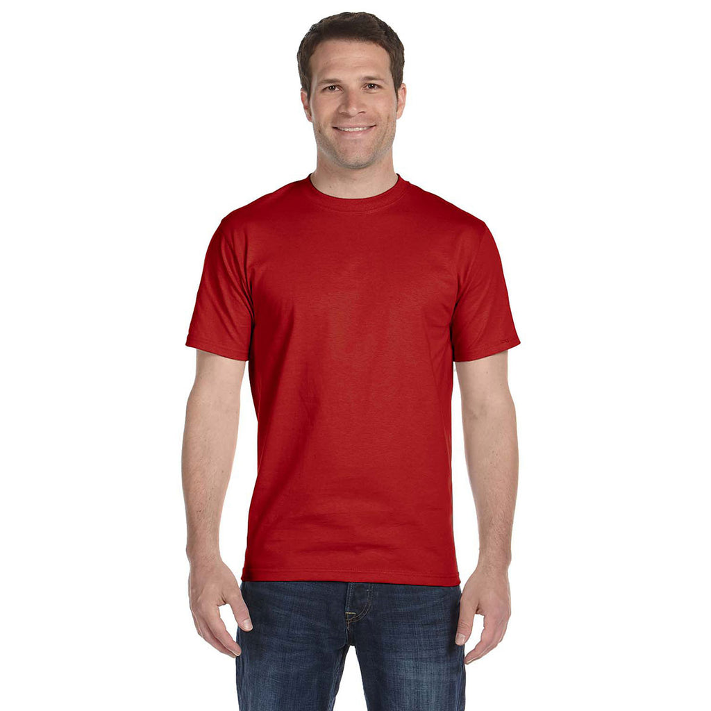 Add a custom logo to your Hanes Men's Deep Red 5.2 oz. ComfortSoft Cotton T-Shirt to show team or company spirit no matter the activity. The beautiful screen print will not only draw the eye, but offer the comfort needed to help people want to wear your shirt. Great as employee apparel for daily wear or to use at recruiting events to draw a crowd. Available in 27 different colors, the double-needle stitching and lay flat collar will make your custom tee an instant favorite of those who see or try them on. Order a few or an entire box before your next event is scheduled.Highlights