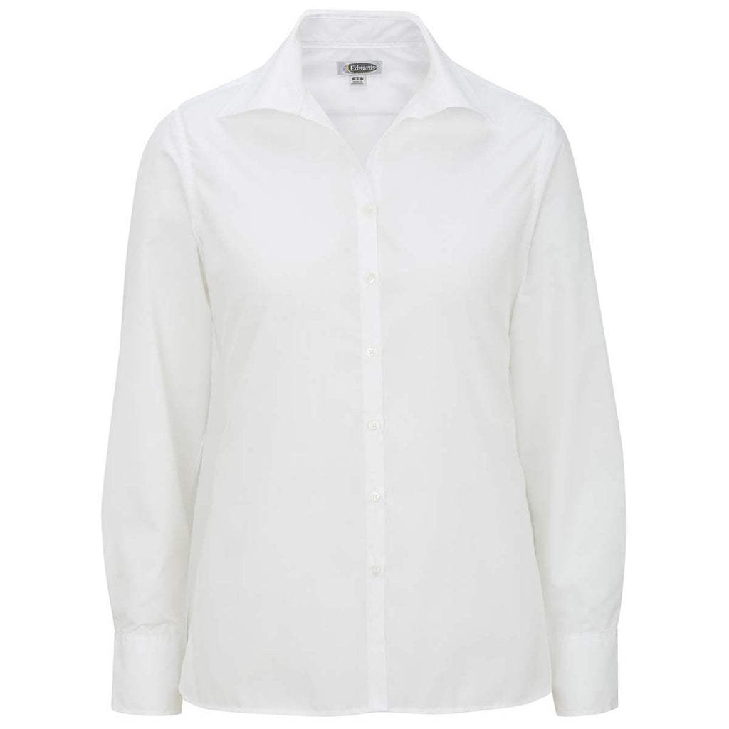 Edwards Women's White Lightweight Open Neck Poplin Blouse