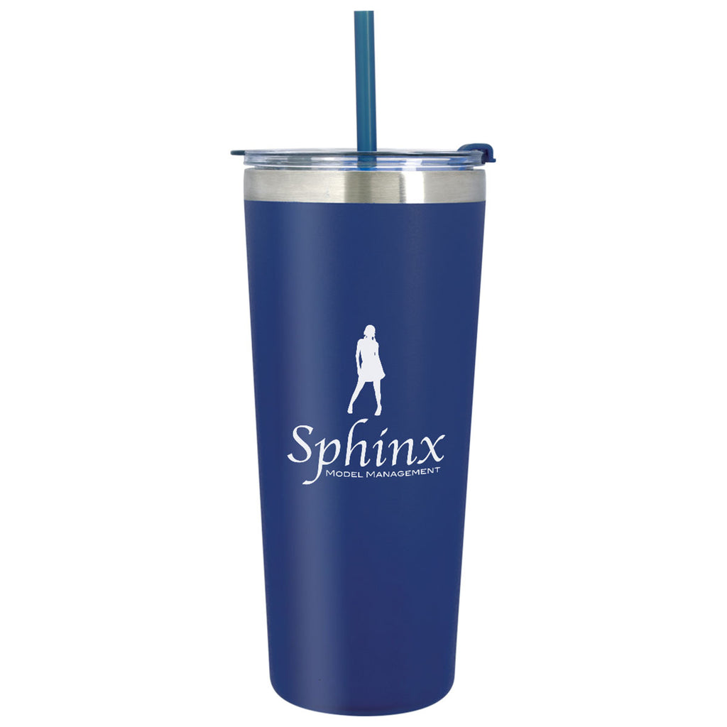 Create a custom logo for the Hit Blue 24 Oz. Colma Tumbler for a great promotional item everyone can enjoy. These silk-screened, or laser-engraved tumblers are stainless steel with snap-on, spill-resistant flip-top lids with straw holder and a non-slip bottom. Great as a gift or sales item for your company.