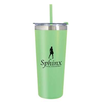 Create a custom logo for the Hit Mint 24 Oz. Colma Tumbler for a great promotional item everyone can enjoy. These silk-screened, or laser-engraved tumblers are stainless steel with snap-on, spill-resistant flip-top lids with straw holder and a non-slip bottom. Great as a gift or sales item for your company.