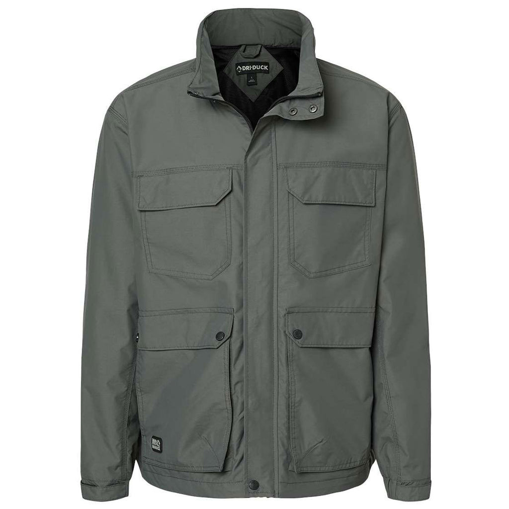 Dri Duck Men's Charcoal Field Jacket with a custom logo is a must have for the hardest workers and outdoorsmen in your life. Made with a 100% nylon shell and polyester mesh lining for the body and hood, this jacket is ready for adventure whether it comes in the form of hard work or play. Add a company logo to the water resistant jacket with packable hood and storm flap to use as part of employee apparel or a custom logo to wear the drop tail design as you hike, bike, and camp in the wilderness. The options are endless for this lightweight field jacket that is as appropriate on the construction site as it is on the morning commute. Place your order right away.
