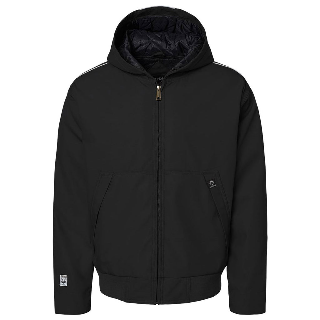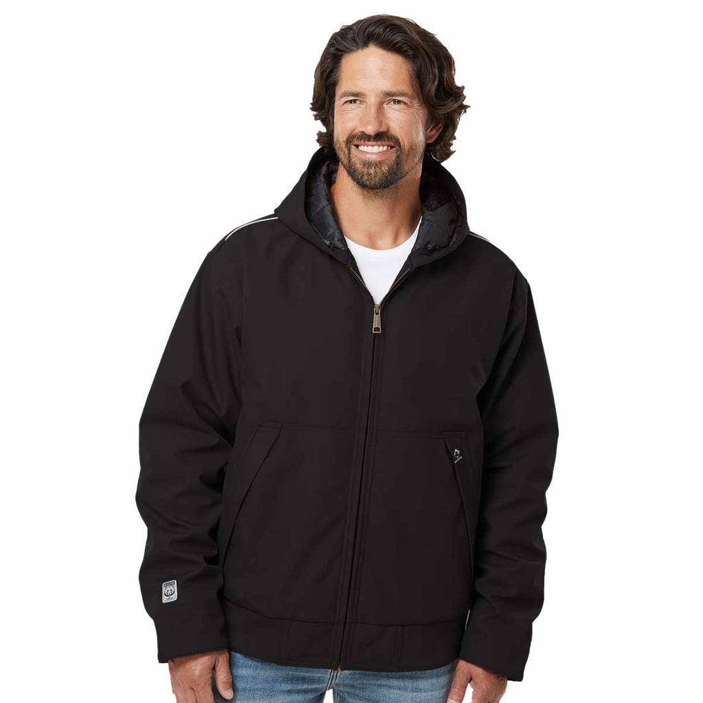 Dri Duck Men's Black Rubicon Jacket with embroidery will keep you looking great and working your hardest in even the toughest conditions. The 100% polyester GrizzlyTec canvas with rugged texture has 3M Thinsulate insulation and quilted nylon lining for warmth. Add a company logo to use as employee apparel for those who have to brave the elements to complete their work. Excellent for personal use on the farm, in construction, or for any outdoor adventures. The abrasion resistant shell is also water resistant and had reflective details. An interior cell phone pocket keeps your phone at hand if you are in need. Place an order today for these jackets that will work as hard as you do.