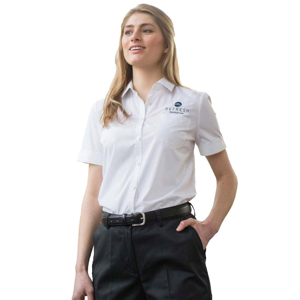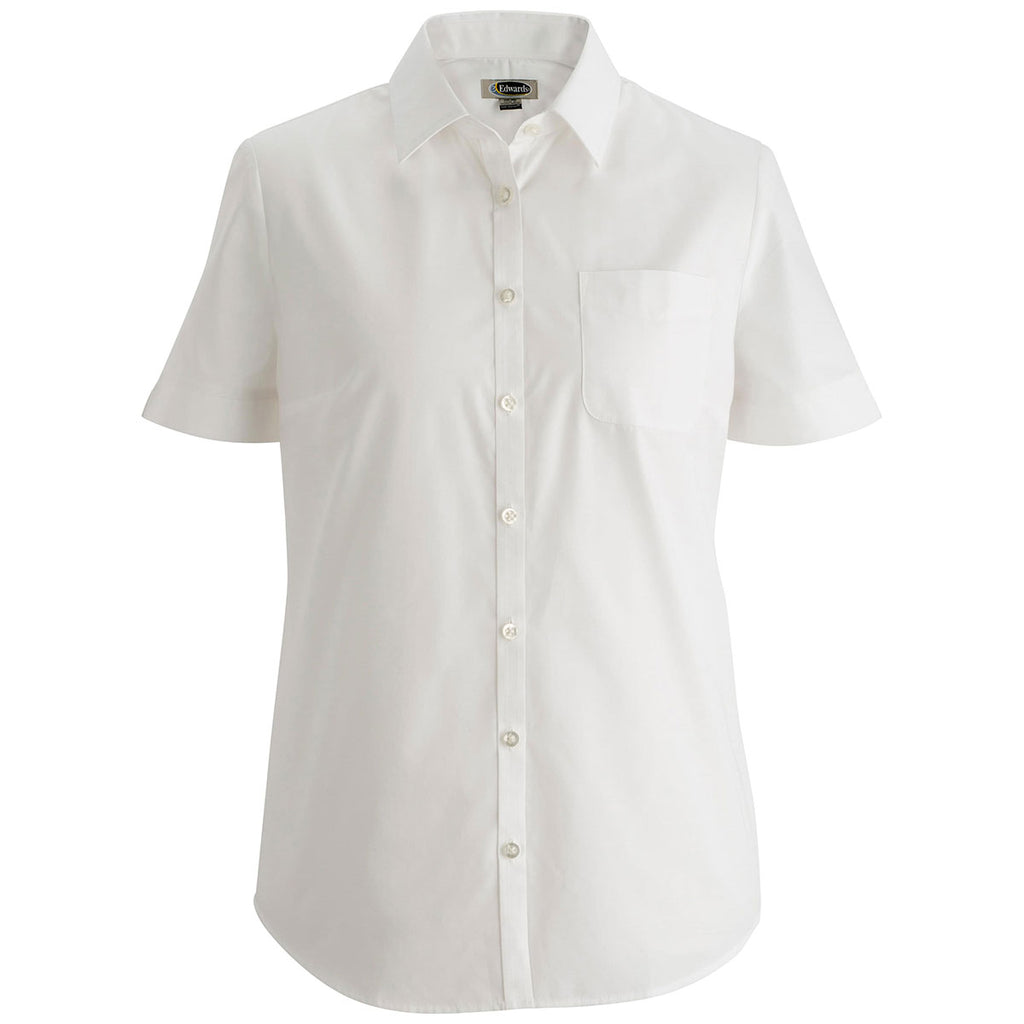 Add a custom embroidery to the Edwards Women's White Essential Broadcloth Shirt for a look that can go from day to night with ease. The lightweight short sleeve shirt is professional enough to be worn as corporate apparel, but functional enough to be used as a uniform with your company logo added as an accent. The performance top provides an improved fit with wrinkle resistance and a point collar with permanent stays. Easily cared for through machine or industrial laundering, this is a must have option for large companies who want to maintain continuity of dress.Highlights