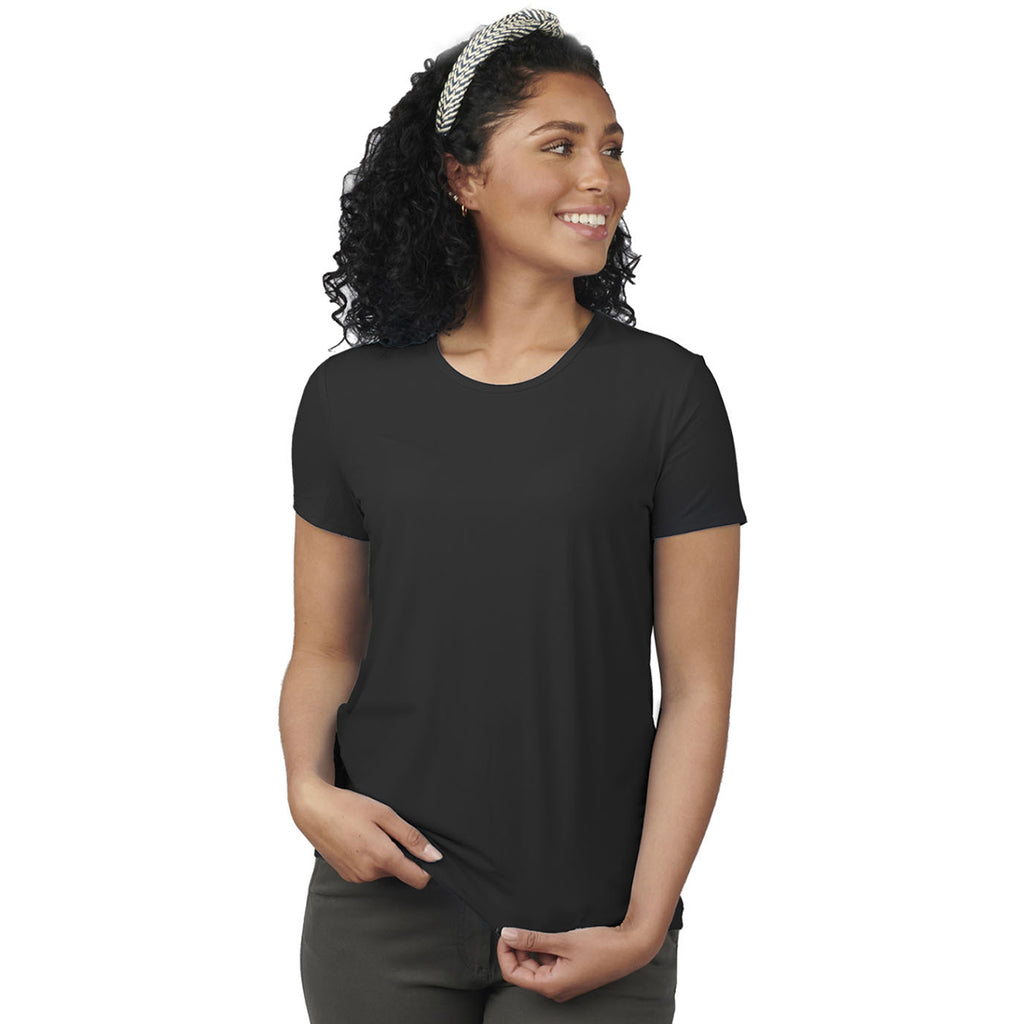 Edwards Women's Black Soft Shell Blouse with custom embroidery is a versatile piece that can serve as workwear or upscale casual as needed. The comfortable jersey knit allows you to look well put together with little effort. The blouse pairs perfectly with jeans but can also be paired with slacks for an office-appropriate creation. Place an order today.Highlights
