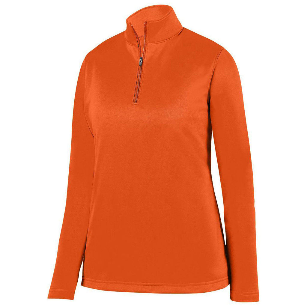 Embroidery will look wonderful on the Augusta Women's Orange Wicking Fleece Pullover made of mid weight polyester performance wicking fleece for warmth and comfort. Add a company logo to the moisture wicking quarter zip pullover with set-in sleeves and an open bottom. A feminine fit makes this fashionable and fun whether heading to work or hanging out with the family. Great as employee apparel for those who need to be outdoors or as employee gifts for any occasion. A custom logo adds possibilities for this pullover to use in any way you see fit. Place an order today to make sure your logoed apparel line includes these amazing pullovers.Highlights