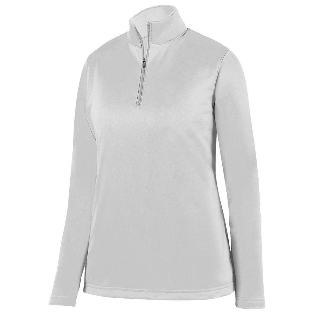 Embroidery will look wonderful on the Augusta Women's White Wicking Fleece Pullover made of mid weight polyester performance wicking fleece for warmth and comfort. Add a company logo to the moisture wicking quarter zip pullover with set-in sleeves and an open bottom. A feminine fit makes this fashionable and fun whether heading to work or hanging out with the family. Great as employee apparel for those who need to be outdoors or as employee gifts for any occasion. A custom logo adds possibilities for this pullover to use in any way you see fit. Place an order today to make sure your logoed apparel line includes these amazing pullovers.Highlights