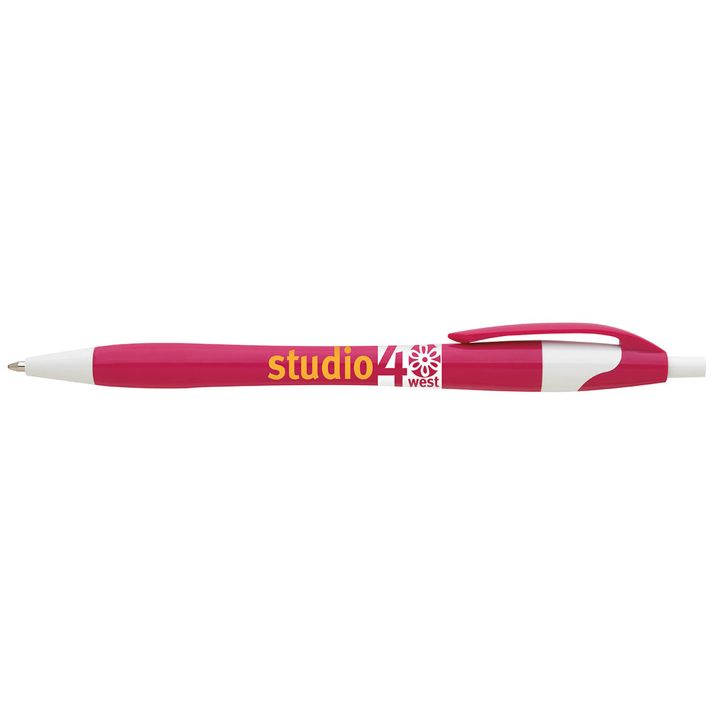 Add your corporate logo to the Good Value Pink with Blue Ink Dart Color clickable pen. These cost-efficient pens offer a solid color barrel of your choosing that will display your name beautifully. The pen provides consistent smooth writing while the ink lasts. Great to give out or allow customers to 'steal' these pens are a must-have. Order today.Please note that there may be a delay in processing your 48-Hour order if artwork revisions are required. Orders requiring revisions or additional details will no longer qualify for 48-Hour production. The 48-Hour lead time is for production only, not delivery. You will select your shipping speed at checkout. 48-Hour orders are not eligible for cancellation. All sales are final. Learn more on our FAQ Page.