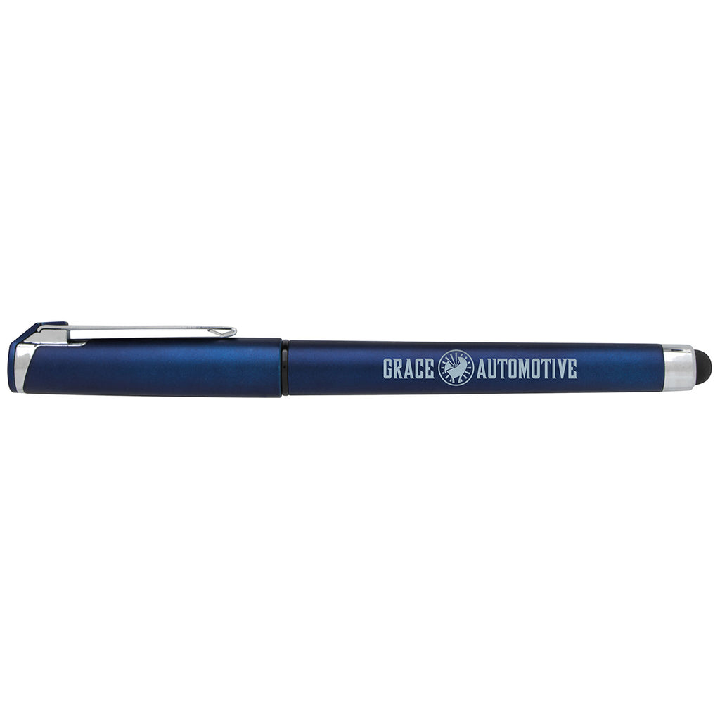 Add your custom logo to the Good Value Blue with Black Ink Cali Stylus Pen to showcase your brand or organization. This stylus pen makes it easy to go from writing notes to working online with the attached stylus. This pen is ideal for work presentations, taking notes at school, or just sharing with others. Order plenty for your next event or to fill your office.The minimum order for this product is 500 pieces.