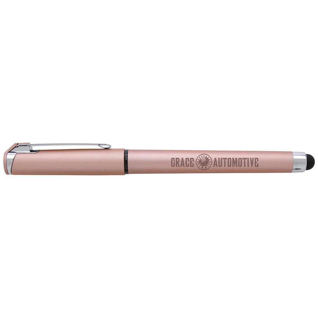 Add your custom logo to the Good Value Metallic Rose Gold with Black Ink Cali Stylus Pen to showcase your brand or organization. This stylus pen makes it easy to go from writing notes to working online with the attached stylus. This pen is ideal for work presentations, taking notes at school, or just sharing with others. Order plenty for your next event or to fill your office.Please note that there may be a delay in processing your 48-Hour order if artwork revisions are required. Orders requiring revisions or additional details will no longer qualify for 48-Hour production. The 48-Hour lead time is for production only, not delivery. You will select your shipping speed at checkout. 48-Hour orders are not eligible for cancellation. All sales are final. Learn more on our FAQ Page.