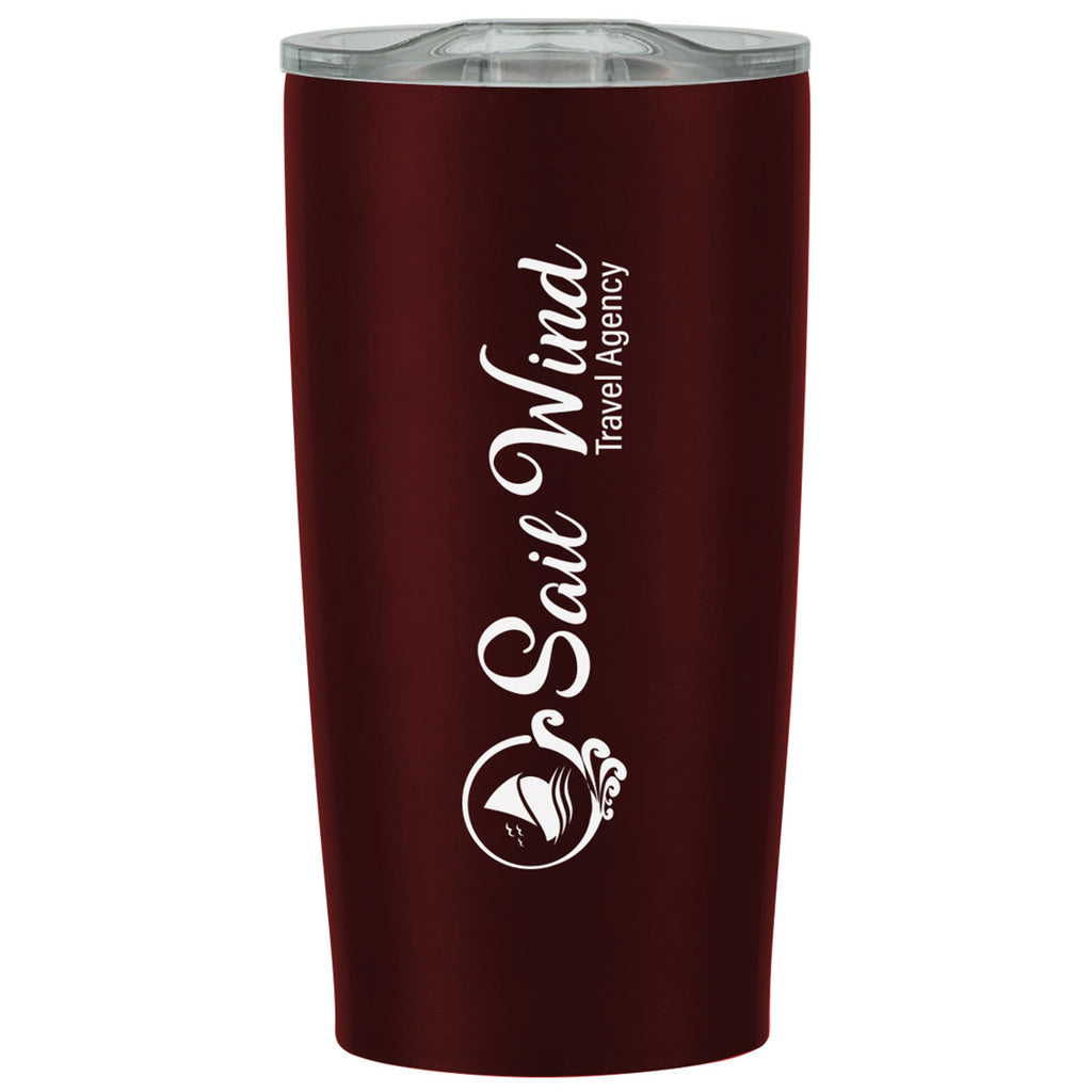 Hit Maroon with Clear Lid 20 Oz. Himalayan Tumbler with a custom logo makes your morning commute and afternoon drink a bit easier to enjoy. The stainless steel tumbler has double wall construction and keeps drinks hot or cool for up to 6 hours as needed. Choose the color you prefer to create a personalized item for your company or event.