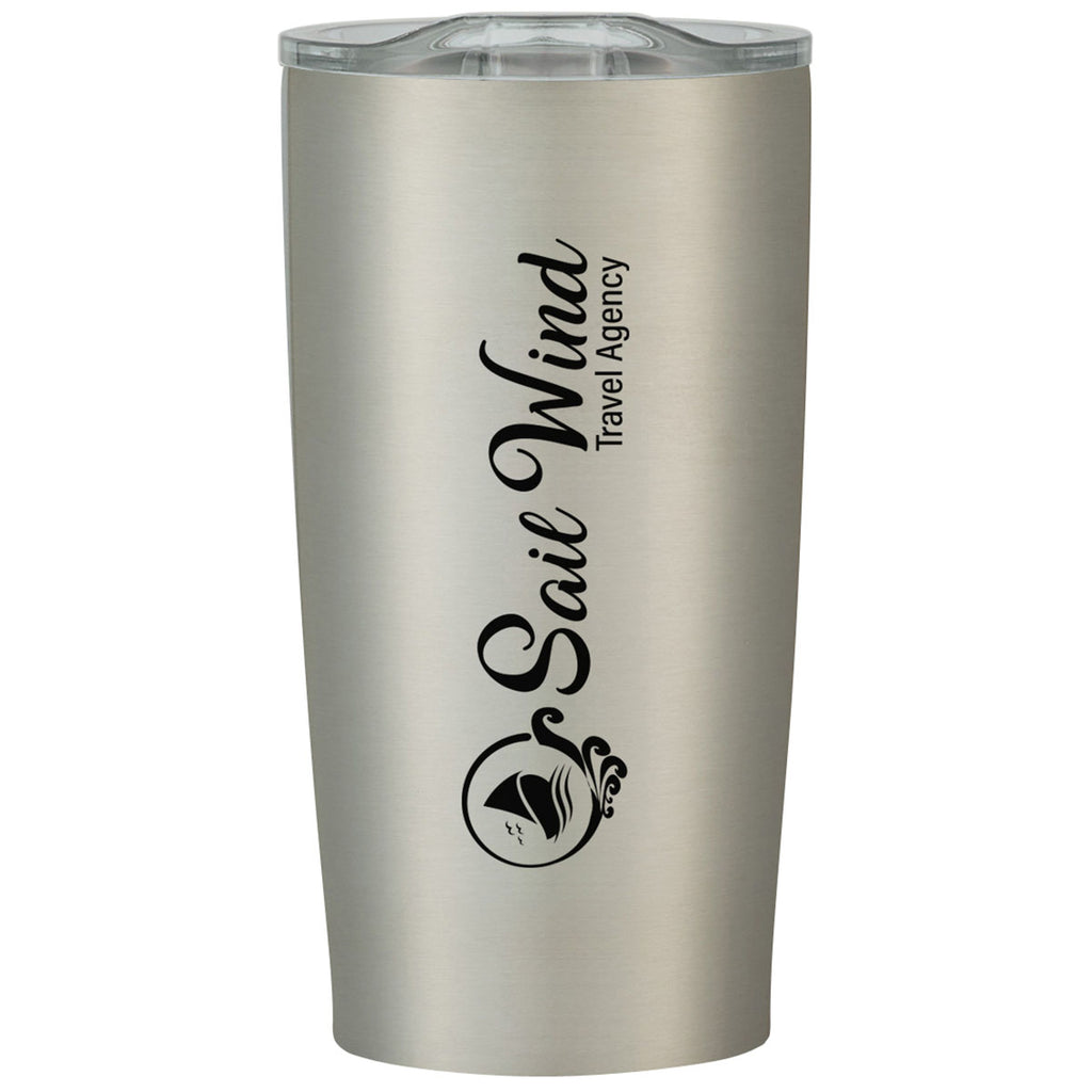 Hit Silver with Clear Lid 20 Oz. Himalayan Tumbler with a custom logo makes your morning commute and afternoon drink a bit easier to enjoy. The stainless steel tumbler has double wall construction and keeps drinks hot or cool for up to 6 hours as needed. Choose the color you prefer to create a personalized item for your company or event.