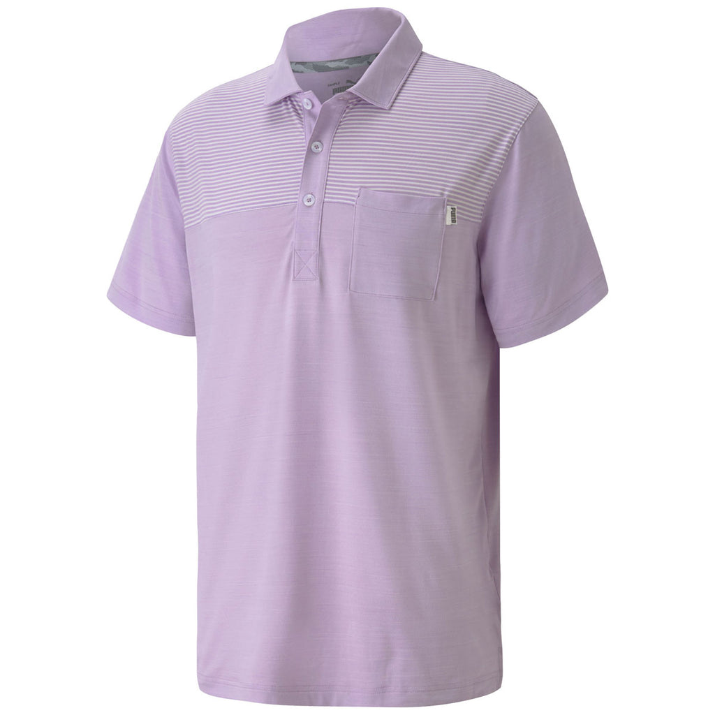 Create a custom look with the Puma Golf Men's Lupine Cloudspun Pocket Golf Polo in a range of colors and sizes. These unique polyester and elastane blend polos have a darker color on the base with a lighter striped shade along the chest and shoulders with darker collar, pocket, and placket. This creates a look that will help you stand out on the golf course or serve as employee apparel for many establishments with a company logo. Your logoed apparel will get you noticed whether walking down the street or practicing on the driving range.