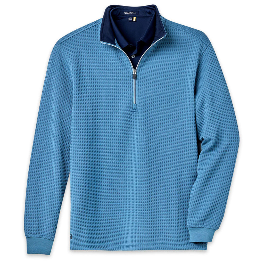 Designed for corporate branding or upscale casual wear, the Straight Down Men's Petrol Optic Quarter Zip stands out with its textured jacquard pattern. The breathable fabric stretches for comfort while providing a tailored look. Easy to layer over polos or tees, it's a go-to piece for team events or travel.Highlights