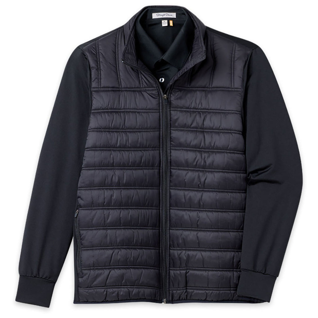Corporate buyers will appreciate the Straight Down Men's Black Patton Jacket for its sleek design and functional warmth. Quilted panels add lightweight insulation, while stretch side panels improve movement and comfort. With secure zip pockets and a modern fit, it's an excellent outerwear option for branded programs or executive gifts.Highlights