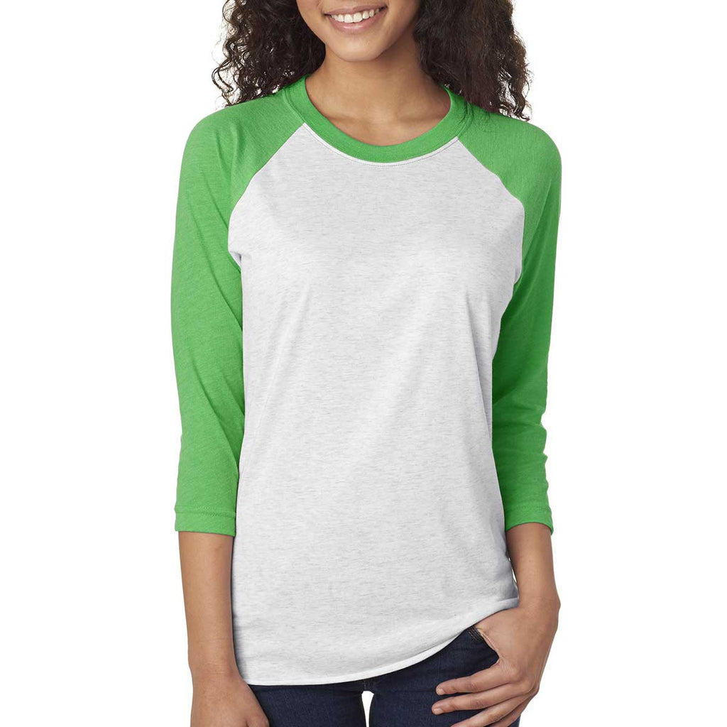 you've had enough of regular tees! No more short sleeves, no more long sleeves! The problem is, you're not sure what else is out there for your own unique, customized branding that might possibly separate you from the pack. Well, it's time to remember your fractions, because the Next Level Unisex Envy/Heather White Triblend 3/4-Sleeve Raglan Tee offers the effective layering and unorthodox look you've been after for so long. Simply add your own customized logo to this tee and you'll find out how easy it is to offer a unique take on corporate swag. After all, it's amazing what sleeves can achieve.Setup includes free 2-color logo on 1 location. If you need more colors added to your logo, or another imprint location, please inquire with a Merchologist.
