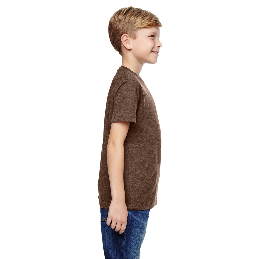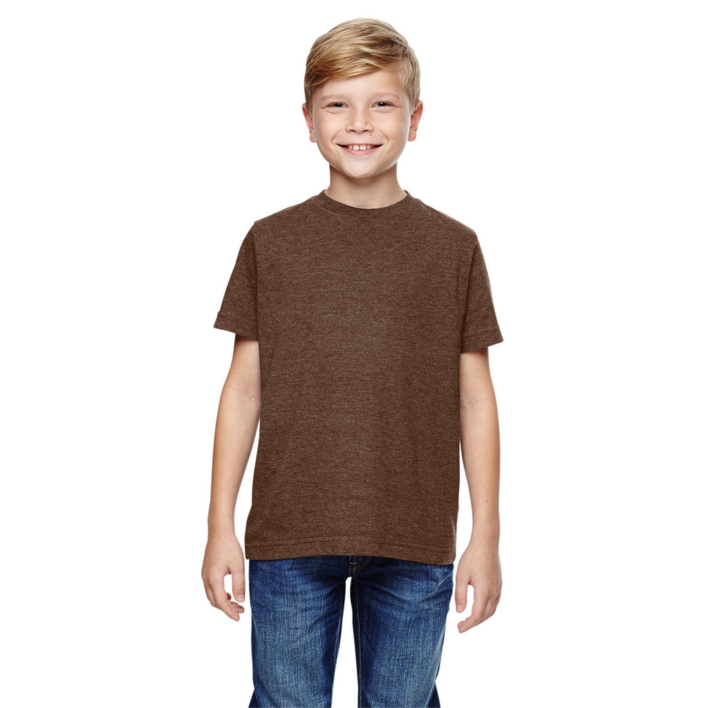 Your corporate logo can be added to the LAT Youth Vintage Chocolate Fine Jersey T-Shirt with ease. The ringspun cotton jersey fabric used in this shirt makes for a relaxed fit that kids will enjoy wearing. The double-hemmed design and ribbed collar add extra comfort for this shirt. With an array of color options, you can choose the color that best complements your company's logo. With the addition of your custom branding, this t-shirt would be perfect to give to your employees' kids at your next company athletic event. It's also a great choice if your company sponsors a youth athletic team.Highlights