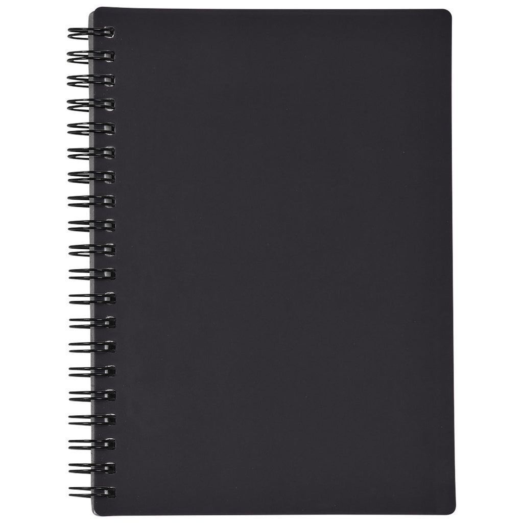 Hit Black Rubbery Spiral Notebook with a corporate logo is a convenient way to take notes and stay organized. The 70 page lined notebook has a PVC cover and cardboard back to showcase your brand. Ideal for use in large meetings, to use at recruitment events, or offer to new clients as a welcome.