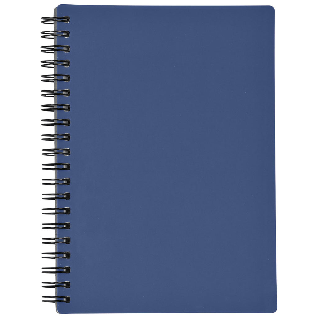Hit Blue Rubbery Spiral Notebook with a corporate logo is a convenient way to take notes and stay organized. The 70 page lined notebook has a PVC cover and cardboard back to showcase your brand. Ideal for use in large meetings, to use at recruitment events, or offer to new clients as a welcome.