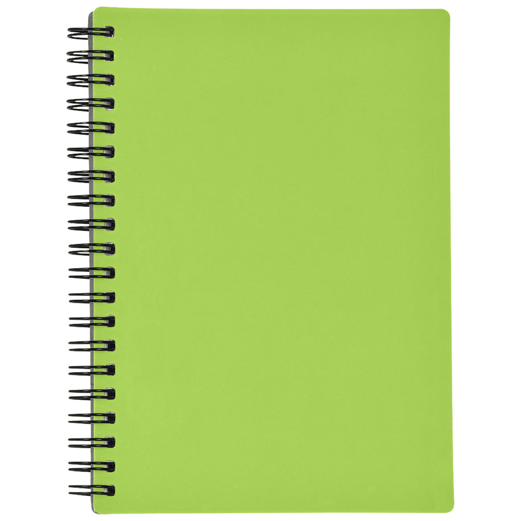 Hit Lime Gren Rubbery Spiral Notebook with a corporate logo is a convenient way to take notes and stay organized. The 70 page lined notebook has a PVC cover and cardboard back to showcase your brand. Ideal for use in large meetings, to use at recruitment events, or offer to new clients as a welcome.