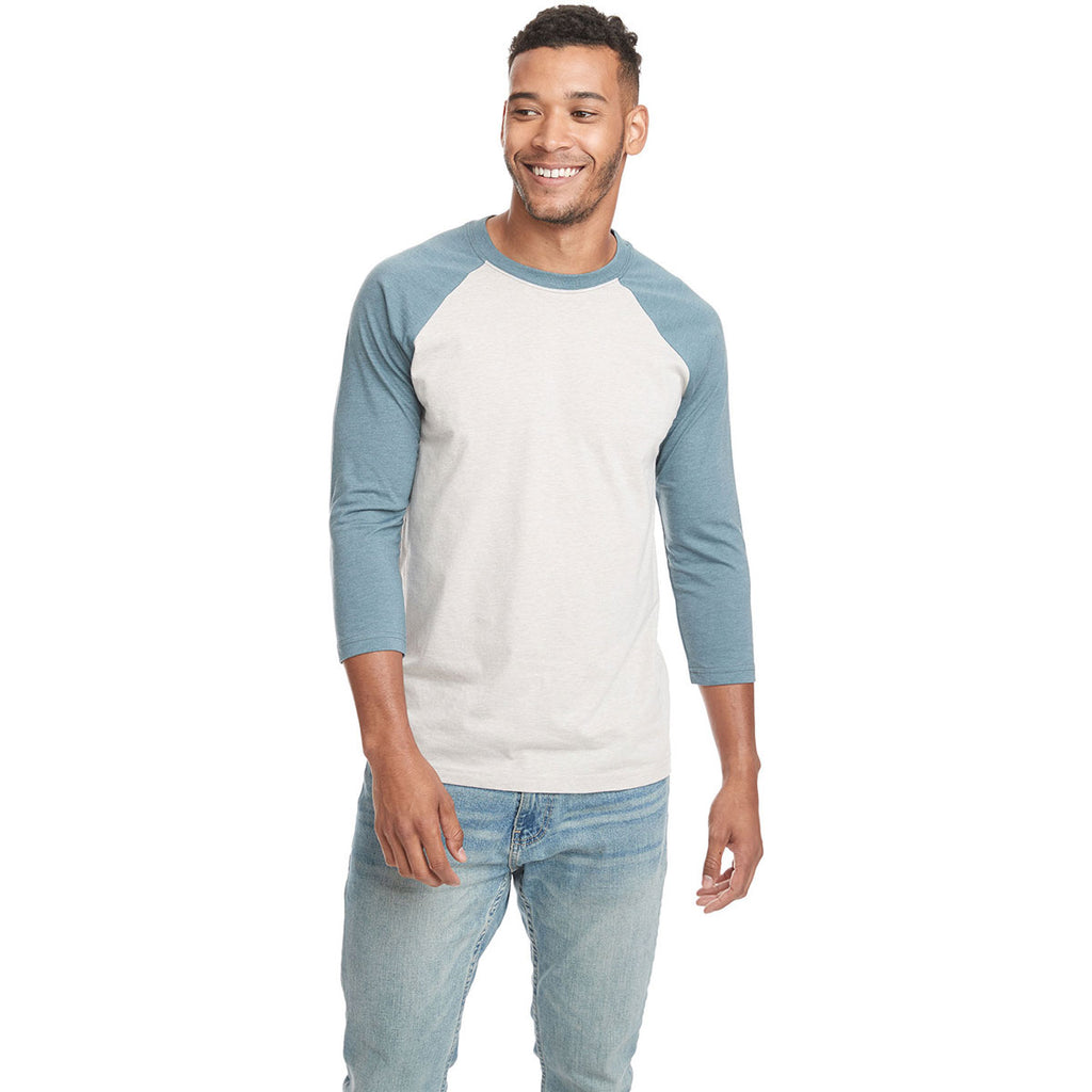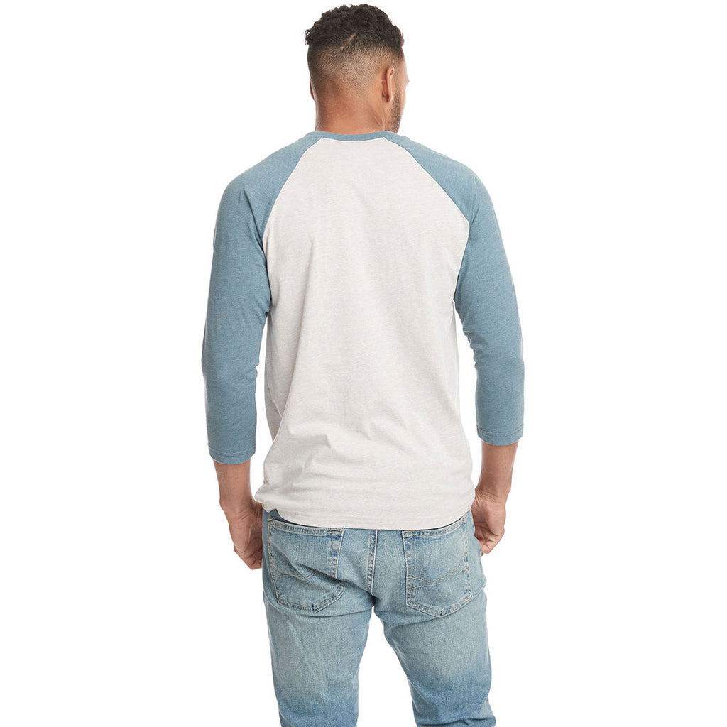 Next Level Unisex Indigo/Silk CVC 3/4 Sleeve Raglan Baseball T-Shirt