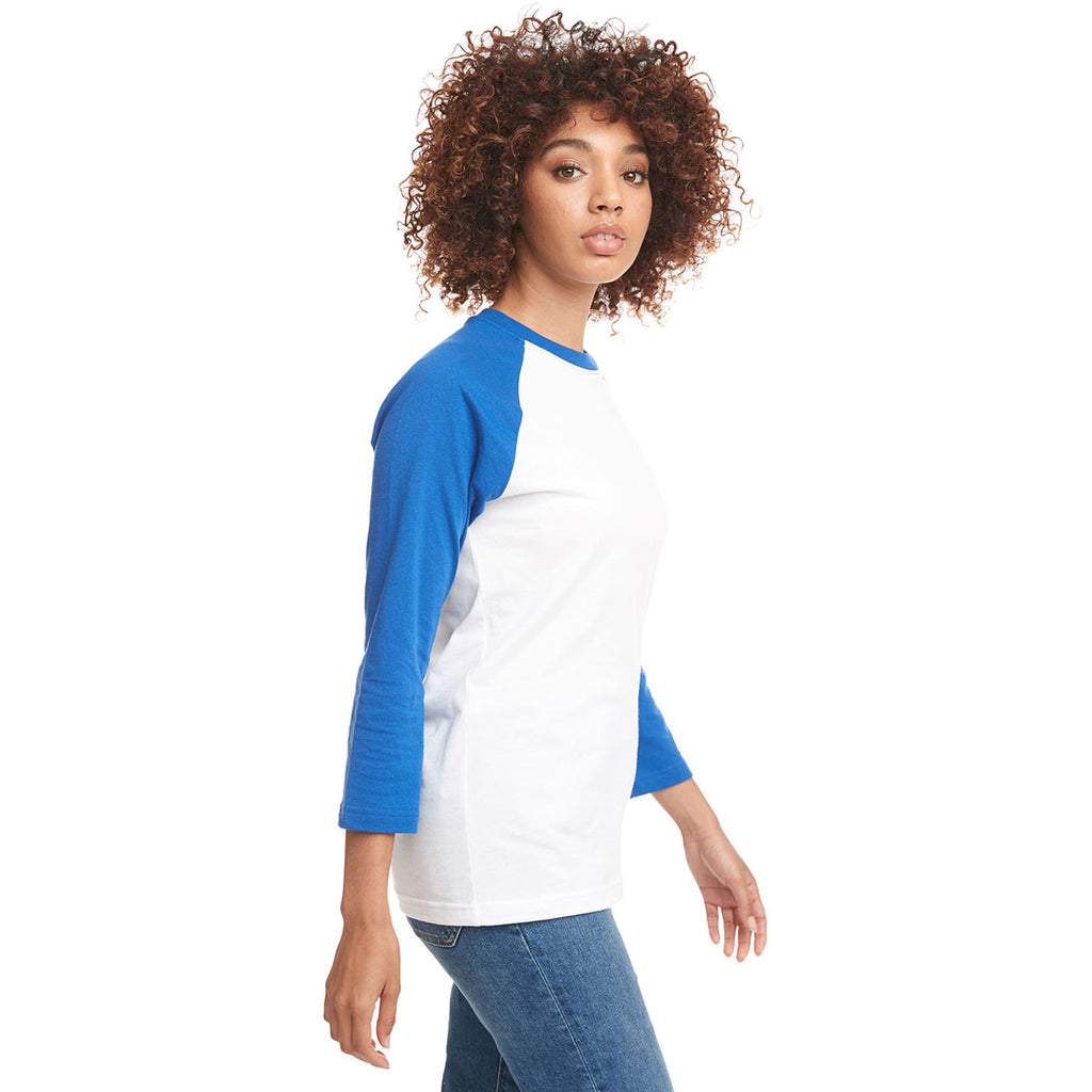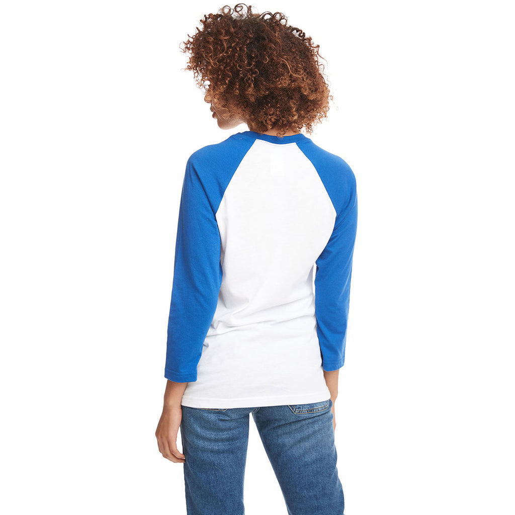 Next Level Unisex Royal/White CVC 3/4 Sleeve Raglan Baseball T-Shirt