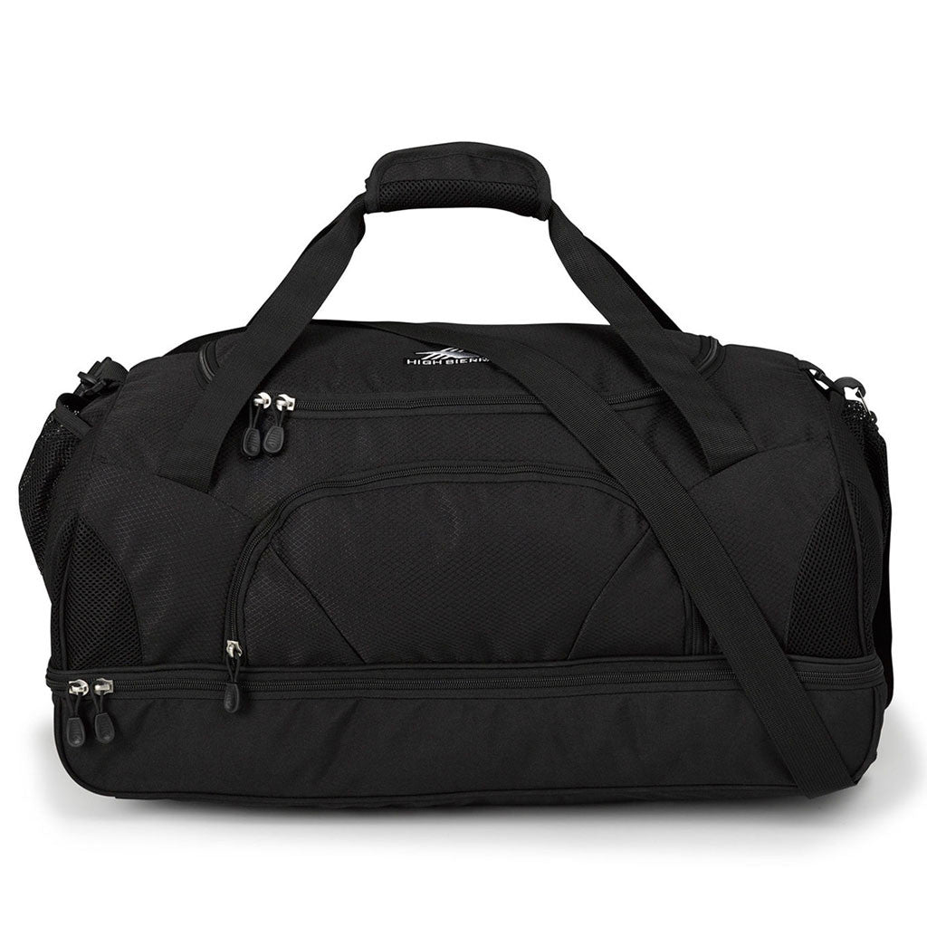 With a capacity of 2,450 cubic inches, the High Sierra Black Wallop Duffel provides plenty of room to store your athletic gear. The drop-bottom storage compartment allows you to organize your gear. Adjustable straps secure a skateboard and yoga mat, among several other types of athletic accessories. The adjustable shoulder strap helps you balance the load to place less strain on your muscles. High Sierra has created an eye-popping design for the duffel that should turn heads at the next big game. Now that you have everyone's attention, why not add a custom logo that promotes your company.