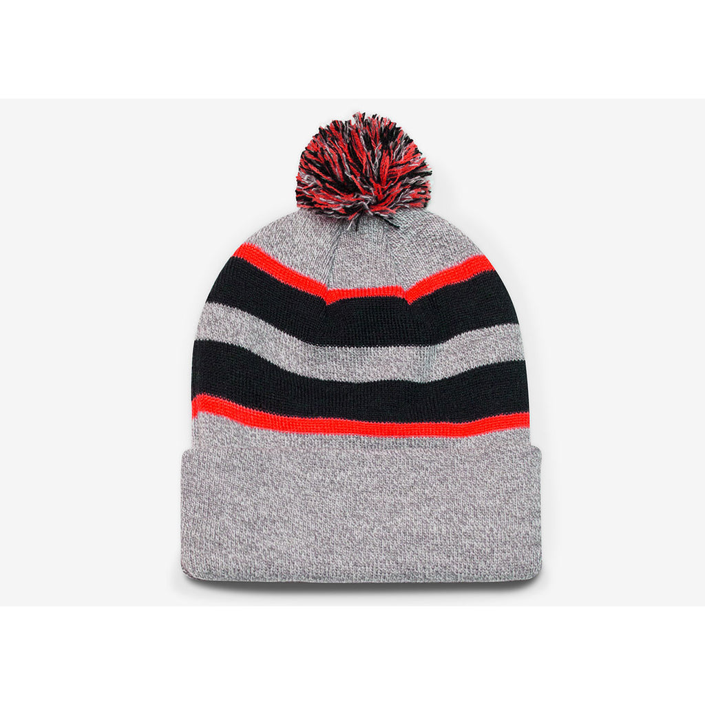 Pacific Headwear Heather Black/Red Loose Fit Pom-Pom Beanie