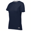 Add a corporate design to the Russell Athletic Women’s Navy Essential Tee to create easy to wear uniform tops that can serve many. Whether waitstaff, cleaners, organizers, or anything you choose, this tee is simple to wash and wear while remaining durable and looking good with moisture wicking technology.