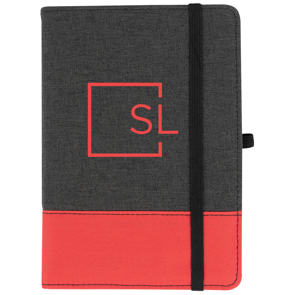 Design your custom look for the Hit Charcoal with Red Lineage Rpet Journal to share in your store, office, or as a gift. The rPET is obtained by melting down plastic bottles and other source materials to create a gorgeous cover for the 80-page lined notebook. For convenience, a matching bookmark, pen loop, and strap closure are included.