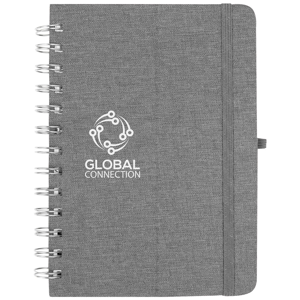 Create a custom emblem for the Hit Grey rPET Notebook with Phone Holder to share with incoming students, new employees, or others who may need to stay organized. The cover is made from rPET materials, and the interior has rings, a notebook, a pen holder, and a strap closure to create an easy-to-carry option. Fold the cover to use as a phone stand.