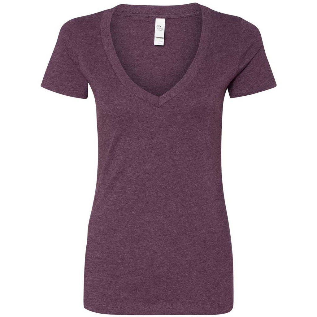 Adding another plain ol' crewneck tee to the outfit isn't always exciting. If you've ever agreed with that statement, perhaps it's time to switch to this Next Level Women's Plum CVC Deep V Tee. Not only does it offer a degree of style that you can't get with the usual tee, but it has all the comfort and carefree attitude of a crewneck. If only all shirts could give you an added layer of interest in your outfit without feeling like they added another layer of discomfort as well. But thankfully, v-necks like this can rescue a drab wardrobe in a hurry. With Merchology, you can add a custom logo to take this v-neck to the next level.Setup includes free 2-color logo on 1 location. If you need more colors added to your logo, or another imprint location, please inquire with a Merchologist.