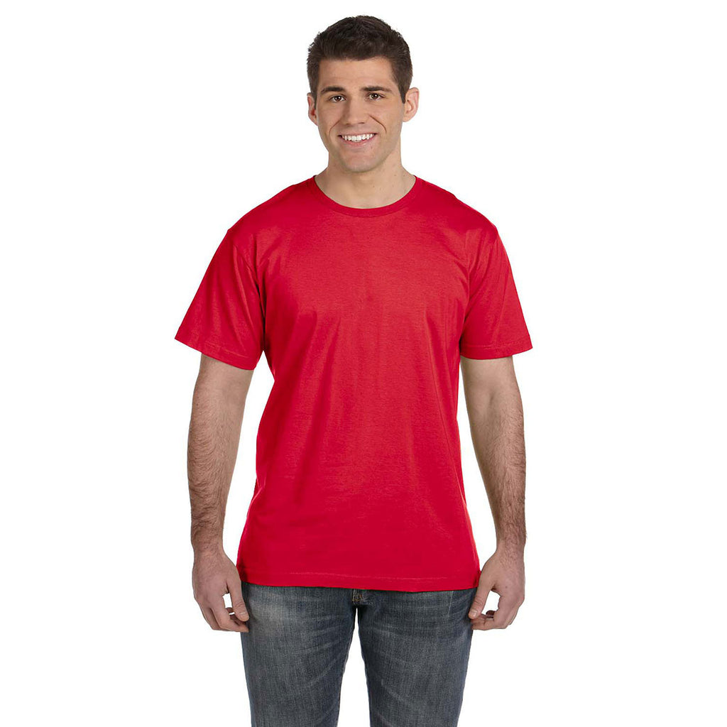 The LAT Men's Red Fine Jersey T-Shirt is the perfect canvas for your company's custom logo. This basic shirt comes in an assortment of colors and features a large cotton fine jersey body that is conducive for displaying a corporate logo or emblem. The ribbed collar adds a ringed look while producing a better grip on the wearer's skin. This shirt is a great choice for casual company uniforms or for company giveaways. It also works well at recruiting events and can be suitable for a company athletic event if desired. Combined with your brand's logo, this shirt is the perfect way to spread the word about your company.