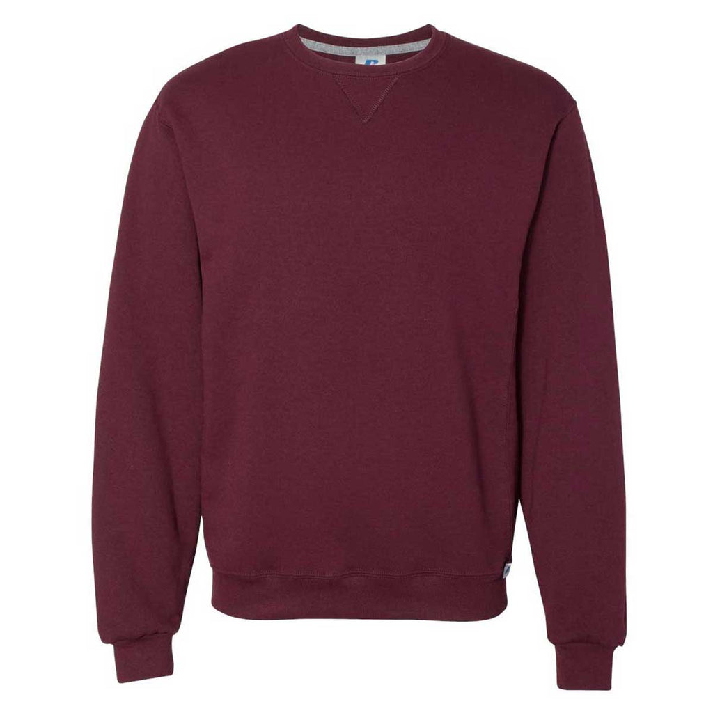 Keep warm in a screen print Russell Athletic Men's Maroon Dri Power Crewneck Sweatshirt. This heavier cotton polyester blend offers Dri-Power moisture management properties with ribbed knit cuffs and waistband. Add a custom logo to this sweatshirt to offer as a custom gift or a company logo to promote your business or cause at an event. The classic sweatshirt is comfort wear at its best and appropriate for chilling at home, hanging with friends, or hitting the gym hard. An easy to wear option that can be enjoyed by all who chose to purchase it.Highlights