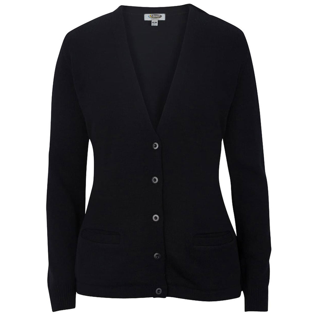 Corporate apparel just got better with the Edwards Women's Navy Jersey Knit Acrylic Cardigan. This high-end acrylic V-neck cardigan has two lower front pockets and rib knit pocket welts, cuffs, and waistband. The partial button closure has dyed to wear buttons. Add a company logo to the cardigan to use as part of a uniform or as an employee gift that can be worn to and from work daily. The machine wash cardigan is colorfast and durable to stand the test of time. Try out a custom logo to add to your own wardrobe or give as custom gifts to those closest to you.
