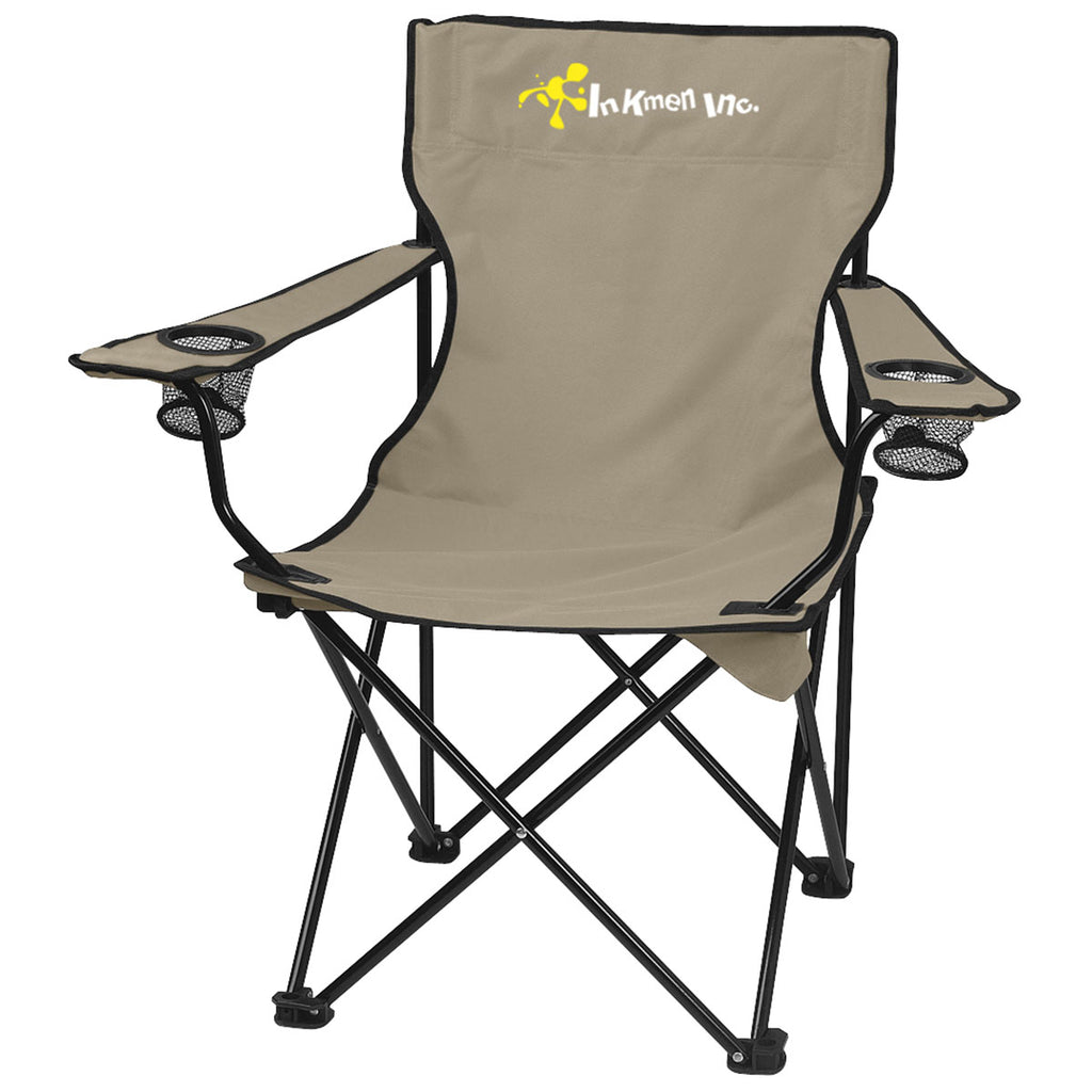 Take a seat with a custom Hit Khaki Folding Chair With Carrying Bag. This adorable stadium chair will showcase your design or brand as people enjoy always finding a comfortable seat. Ideal for tailgating with built-in mesh cup holders, the chair is easy to fold, store, and toss in the back of your vehicle for the next big event.