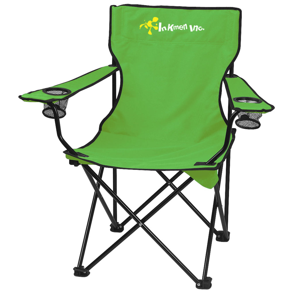 Take a seat with a custom Hit Lime Green Folding Chair With Carrying Bag. This adorable stadium chair will showcase your design or brand as people enjoy always finding a comfortable seat. Ideal for tailgating with built-in mesh cup holders, the chair is easy to fold, store, and toss in the back of your vehicle for the next big event.