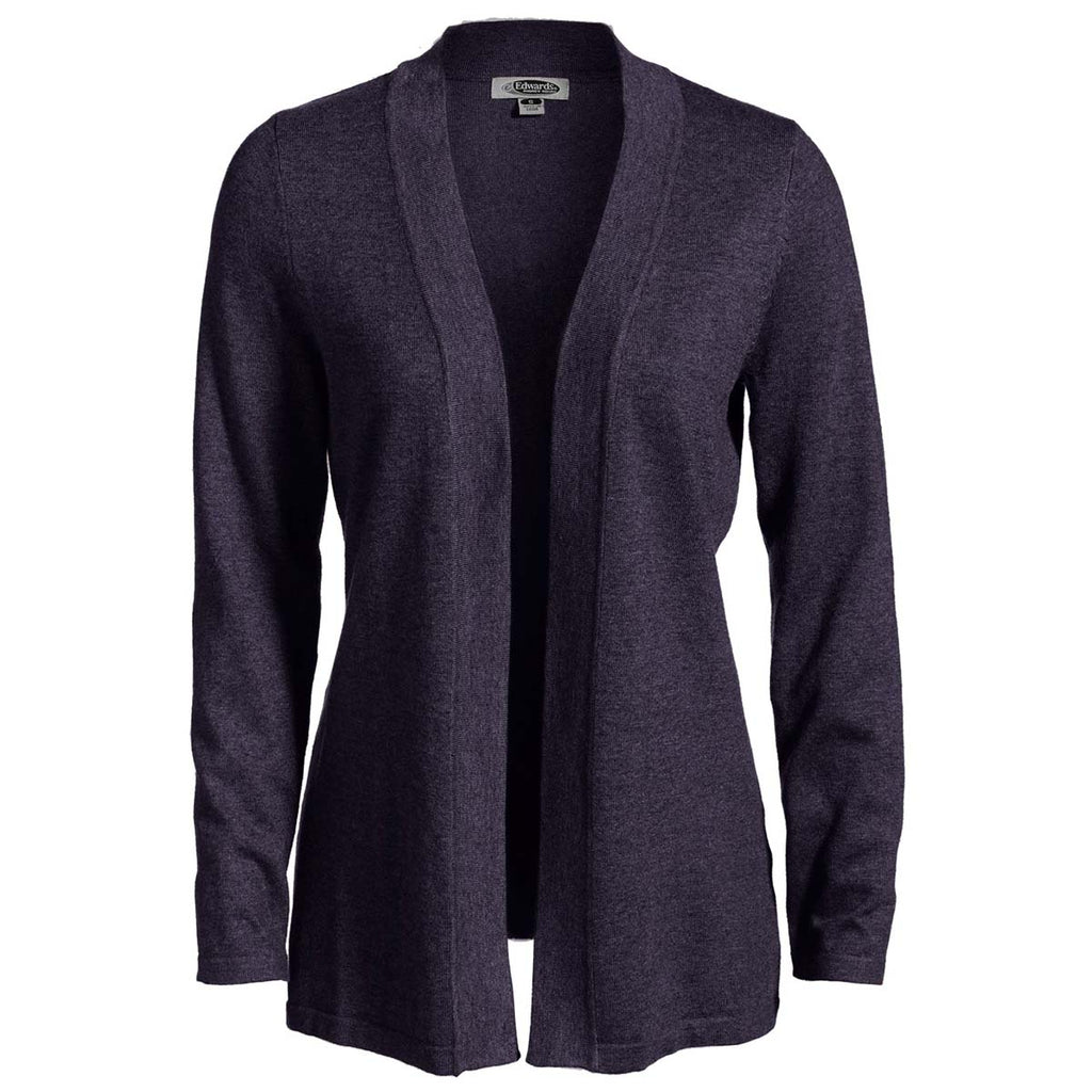Bring back a custom classic with the Edwards Women's Grape Heather Open Cardigan available in multiple colors. Made of a blend of cotton, acrylic, and nylon with full fashioned sleeves, these cardigans offer a longer length and flattering silhouette that will be a big hit with a corporate embroidery in your choice of design. Use these as part of hospitality apparel or even corporate uniforms to create a classic, yet unique look for your company. Perfect for the office, the weekend, or a big event, these are easily used as an outer layer to add to any outfit.Highlights