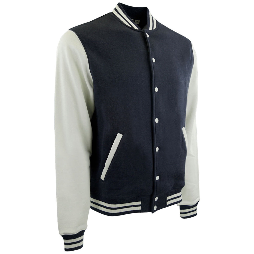 Vantage Unisex Navy Varsity Award Jacket with a custom logo is a must-have for the athletes in your school or organization. The cotton and polyester blend with brushed back fleece has a snap-front closure, rib-knit collar, and welt pockets for a classic look. Order for top athletes, players, and anyone else who deserves recognition. Place an order today.Highlights