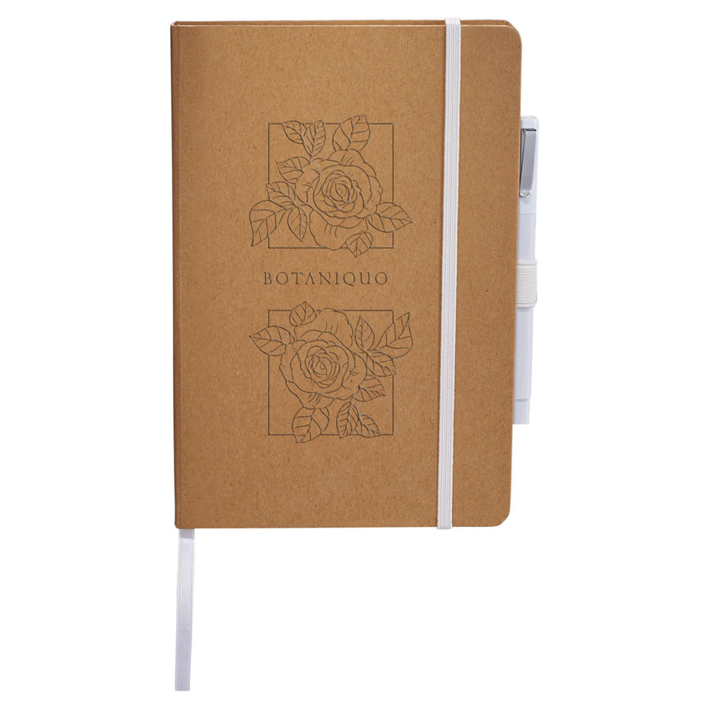 The JournalBooks White Eco Color Bound JournalBook Bundle Set is made with a recycled paper cover and includes an elastic enclosure plus a pen loop that sticks out. You can get the enclosure and loop prepared in one of many colors. A ribbon page market is also included. The set is a beautiful gift to offer during a promotional event, especially during a green initiative plan. Your company logo will look beautiful on the recycled paper cover.